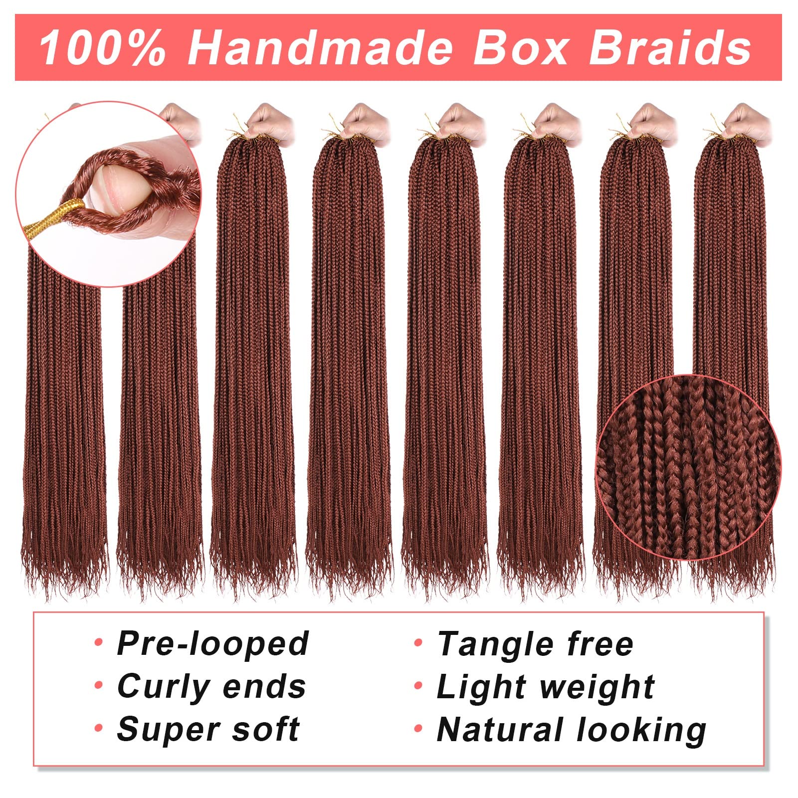 Amazon Com Xtrend 36 Inch 8 Packs Box Braids Crochet Hair Pre Looped Copper Red Jumbo Box Braid Hair Extensions Easy Installation Long Box Braids Synthetic Crochet Hair For Women 12strands Pack 350
